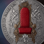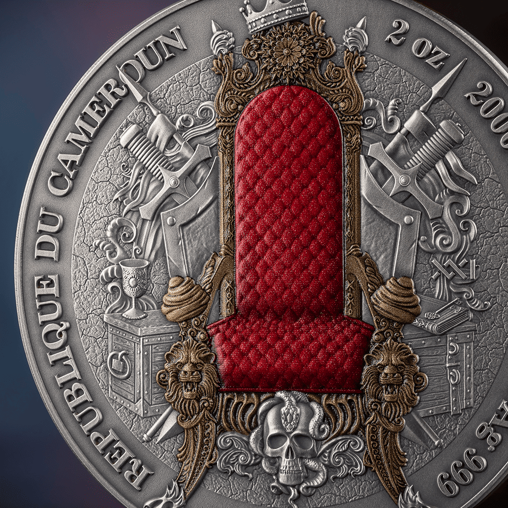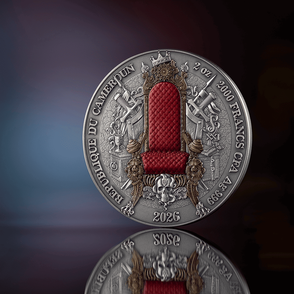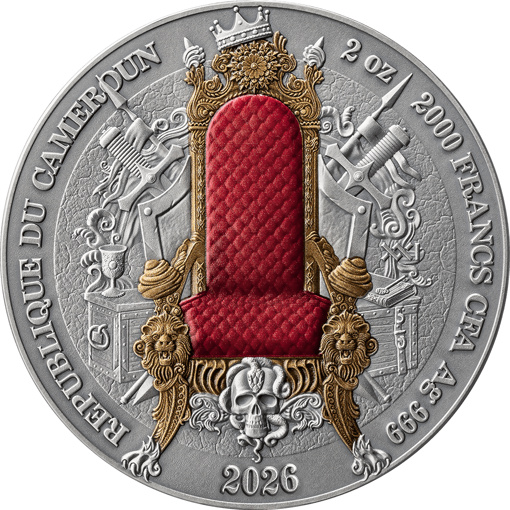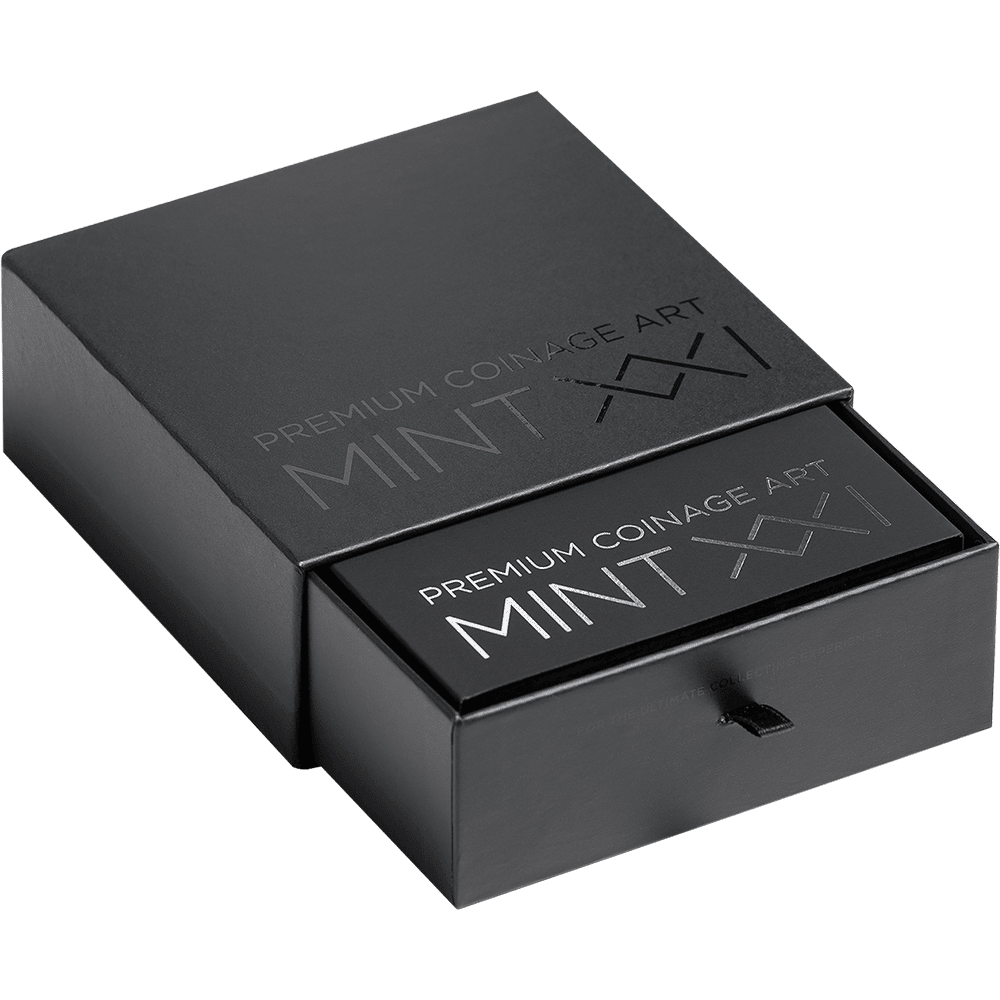 This 2-ounce silver coin presents a Persian sovereign in commanding high relief, flanked by the legendary Immortals — the empire's elite guard. The composition weaves together defining symbols of Persian greatness: the Cyrus Cylinder, regarded as the world's first declaration of human rights, a sacred Zoroastrian fire altar, the winged lion, and the gates of Babylon. Digital printing traces the vast reach of Persian dominion across the ancient map, while gilding illuminates the empire's iconic crest.
